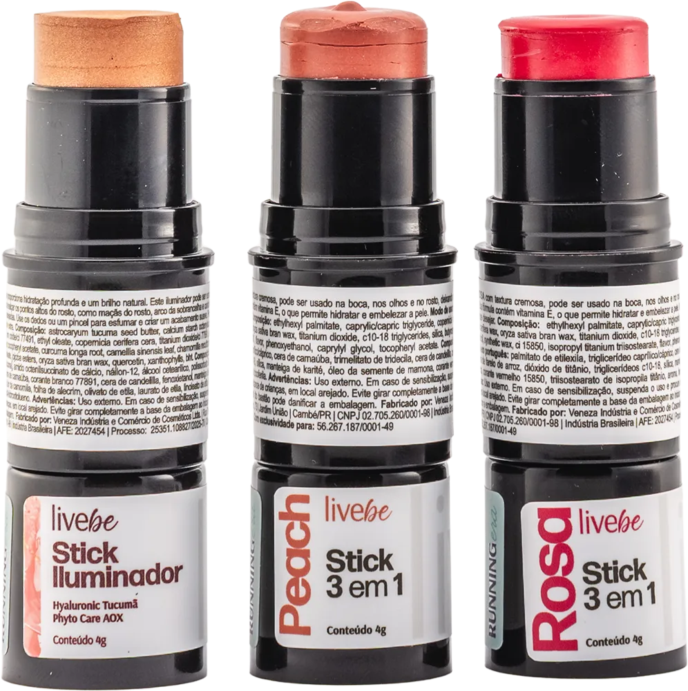O Stick de Maquiagem 3 em 1 é aquele item indispensável na sua necessaire! Com tons rosa, peach e iluminador, ele é delicado e versátil. Pode ser usado como blush, batom e sombra, entregando um toque de cor natural que realça a sua beleza com aparência saudável e luminosa.